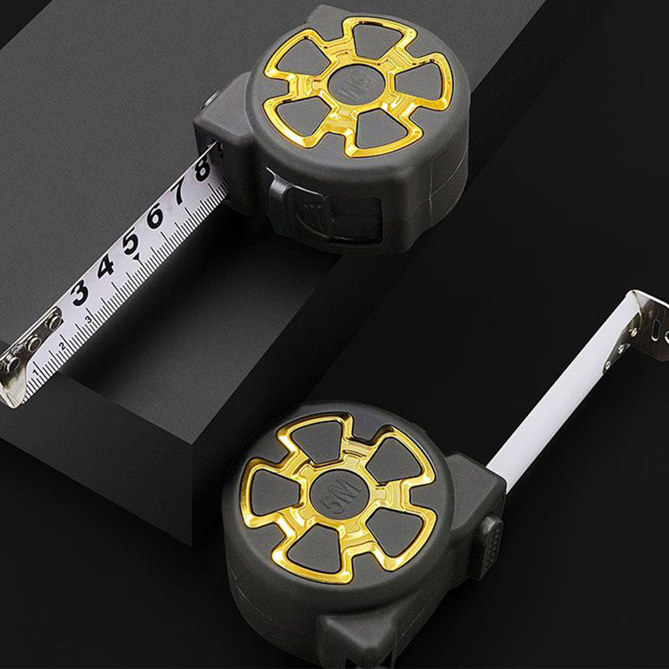 Ruban à mesurer automatique à retour automatique avec lame en acier jaune de qualité industrielle de 5 m, logo personnalisé, haute visibilité, boîtier en ABS durable, métrique