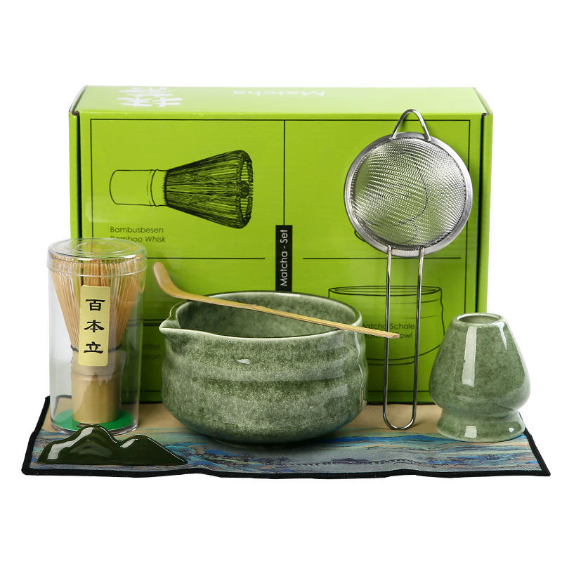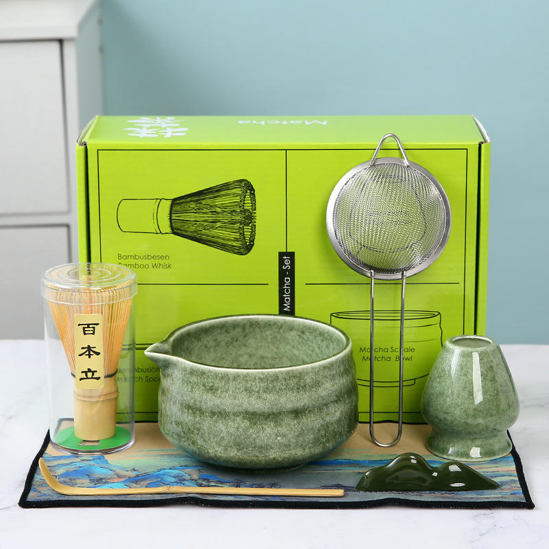 Boîtes d'accessoires pour le thé Matcha de qualité japonaise, 7 pièces, logo personnalisé, bols en céramique, outils Matcha Kit Set de fouet