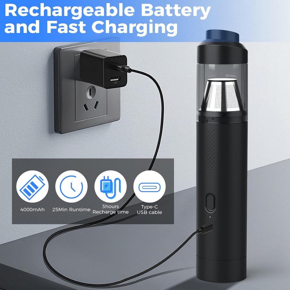 Aspirateur de voiture portable sans fil 3-en-1 avec logo personnalisé, moteur 75000 tr/min, aspirateur à main et souffleur d'air haute puissance 12000PA