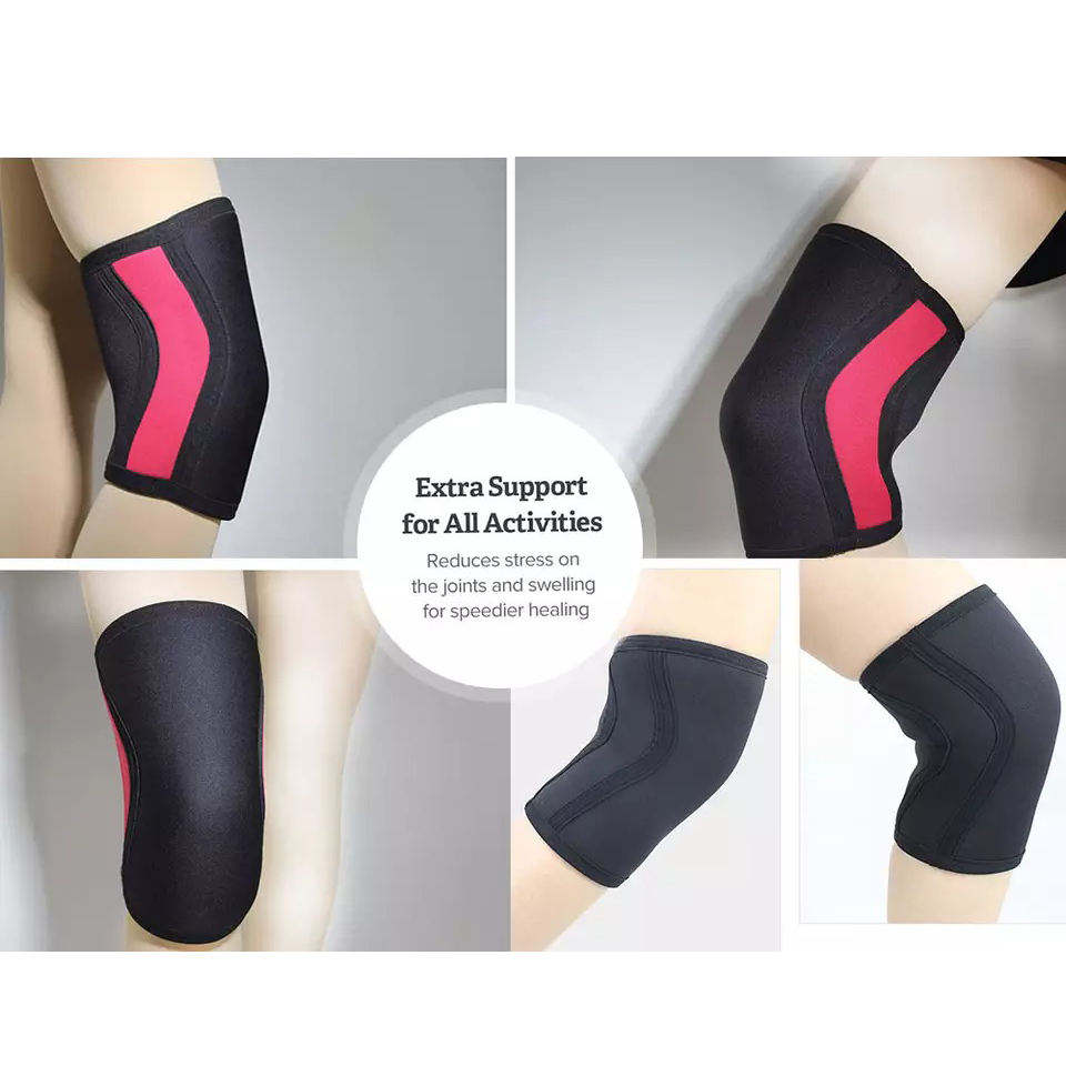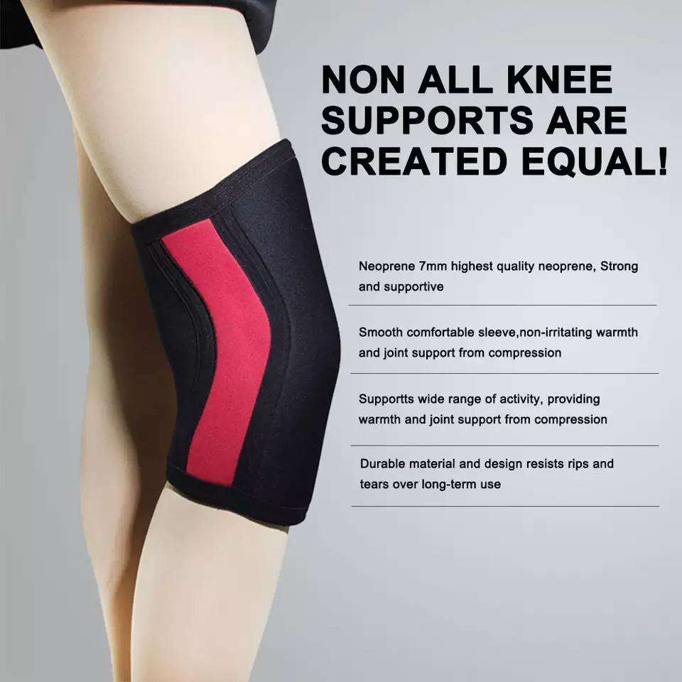Genouillère de compression en néoprène 7 mm avec logo personnalisé, unisexe, noir et rouge, pour la musculation, les squats, la protection pendant les exercices de gym