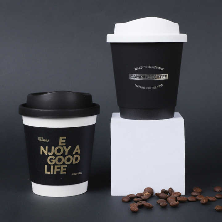 Gobelet à café en papier à double paroi personnalisé avec logo, 8oz, 12oz, 14oz, 16oz, noir avec estampage à chaud doré, gobelet à emporter avec couvercle