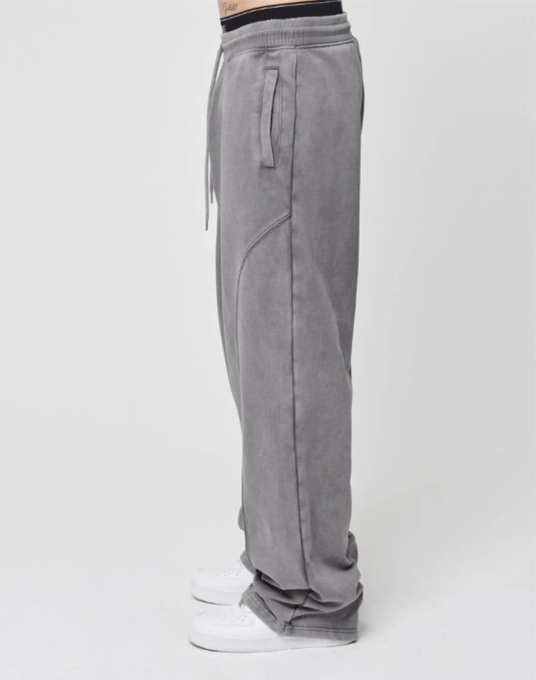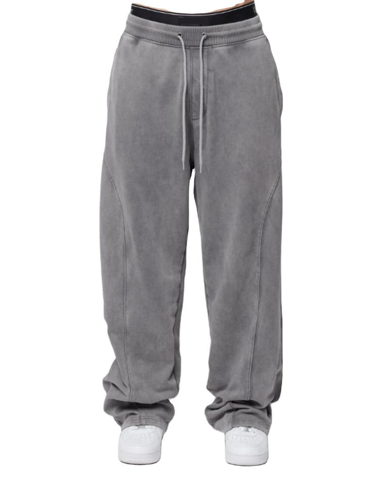 Logo personnalisé lavage à l'acide Streetwear casual coton surdimensionné Baggy pantalons de survêtement nouveau élégant 100% coton Doulde taille hommes pantalon évasé