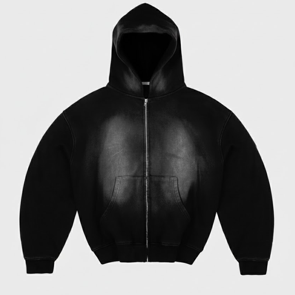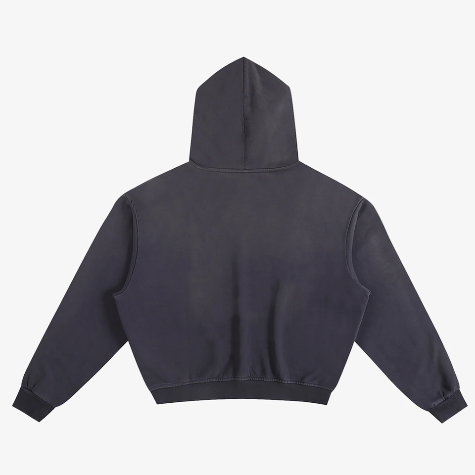 Sweat à capuche d'hiver personnalisé avec logo, délavé à l'acide, broderie délavée au soleil, polaire respirant, fermeture éclair intégrale, coupe ample et légère, 100% coton