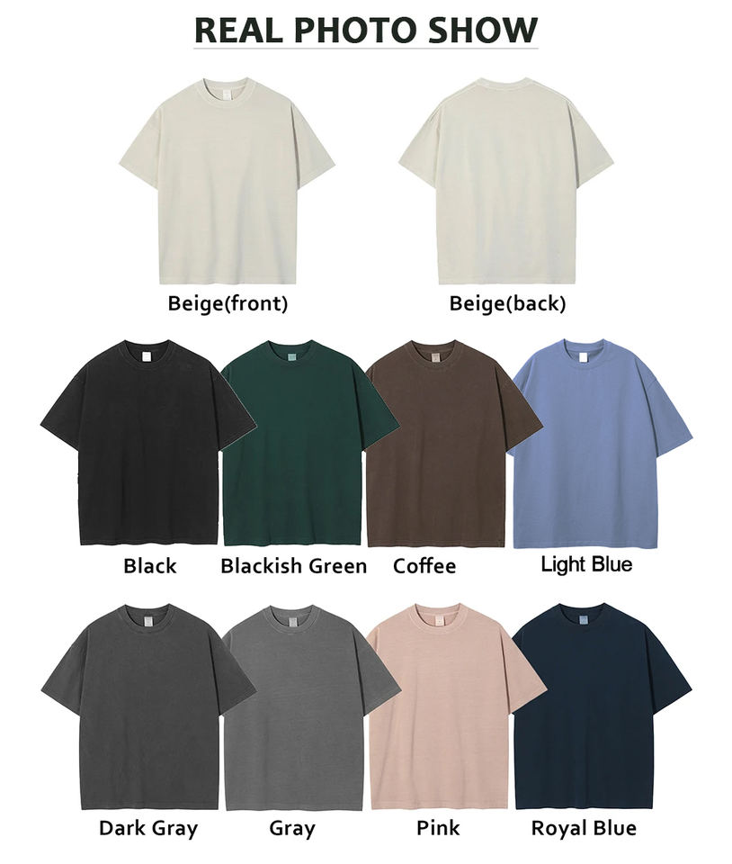 T-shirt unisexe en coton 100% lourd délavé à l'acide avec logo personnalisé, 275 g/m², t-shirt uni de qualité supérieure vintage pour homme