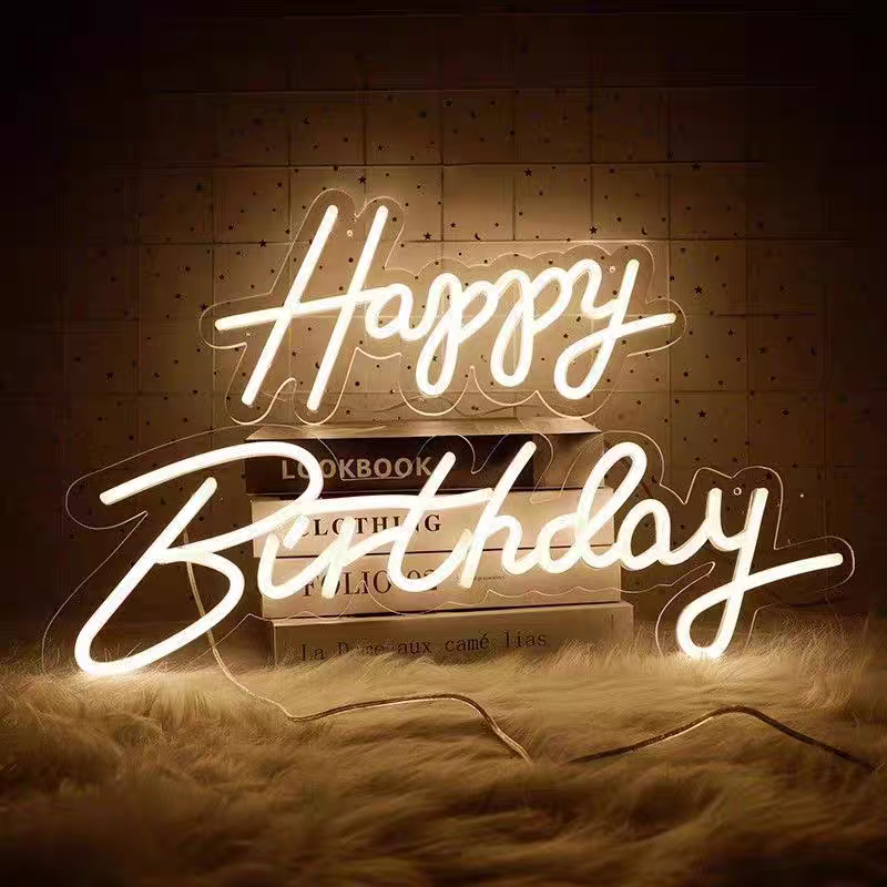 Enseigne au néon LED en acrylique avec logo personnalisé, texte personnalisé, nom, joyeux anniversaire, pour décorations de mariage, garantie 1 an