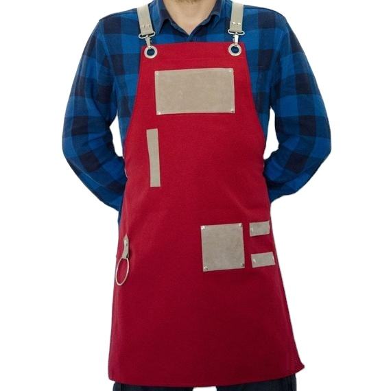Custom Logo Adjustable Bib Aprons Leather Fabric Waterproof Plain Polyester Barber Apron Women Men Customizable Kitchen Apron
