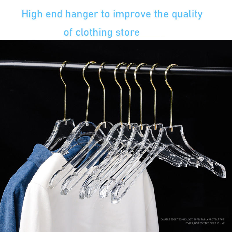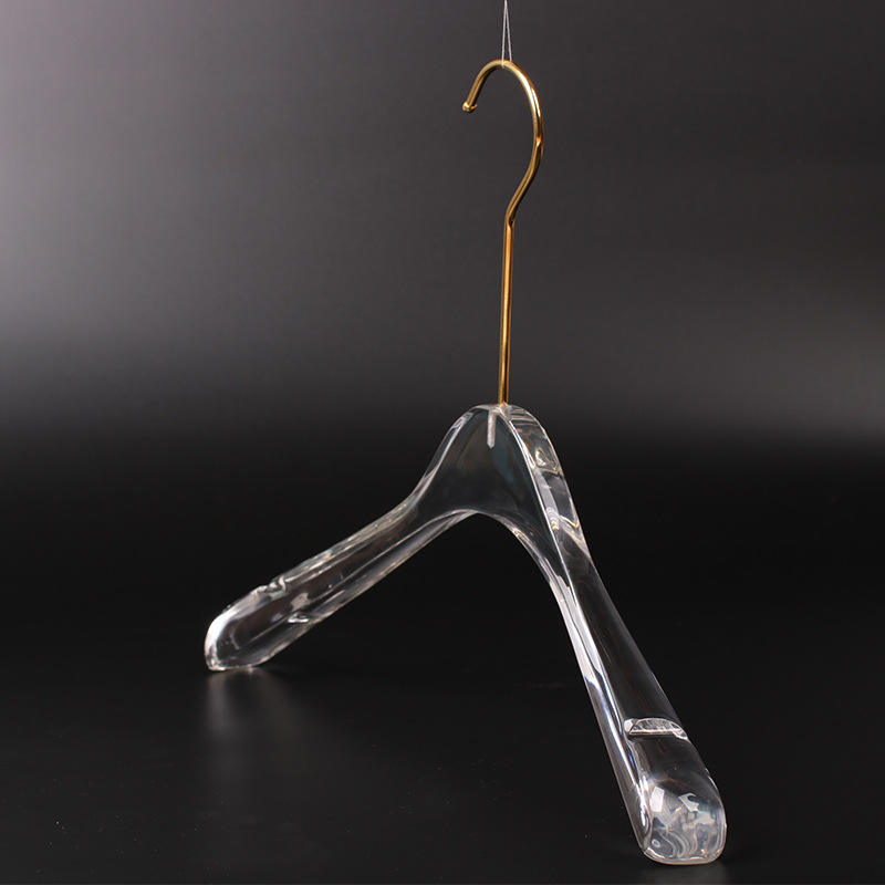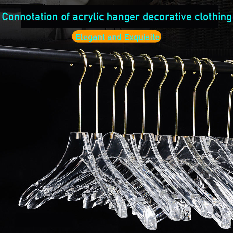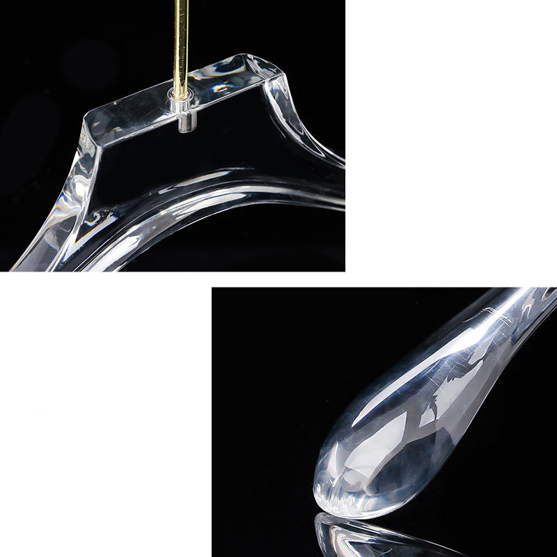 Logo personnalisé Cintre pour adulte en plastique acrylique transparent avec crochet en métal Cintre pour manteau et veste anti-dérapant
