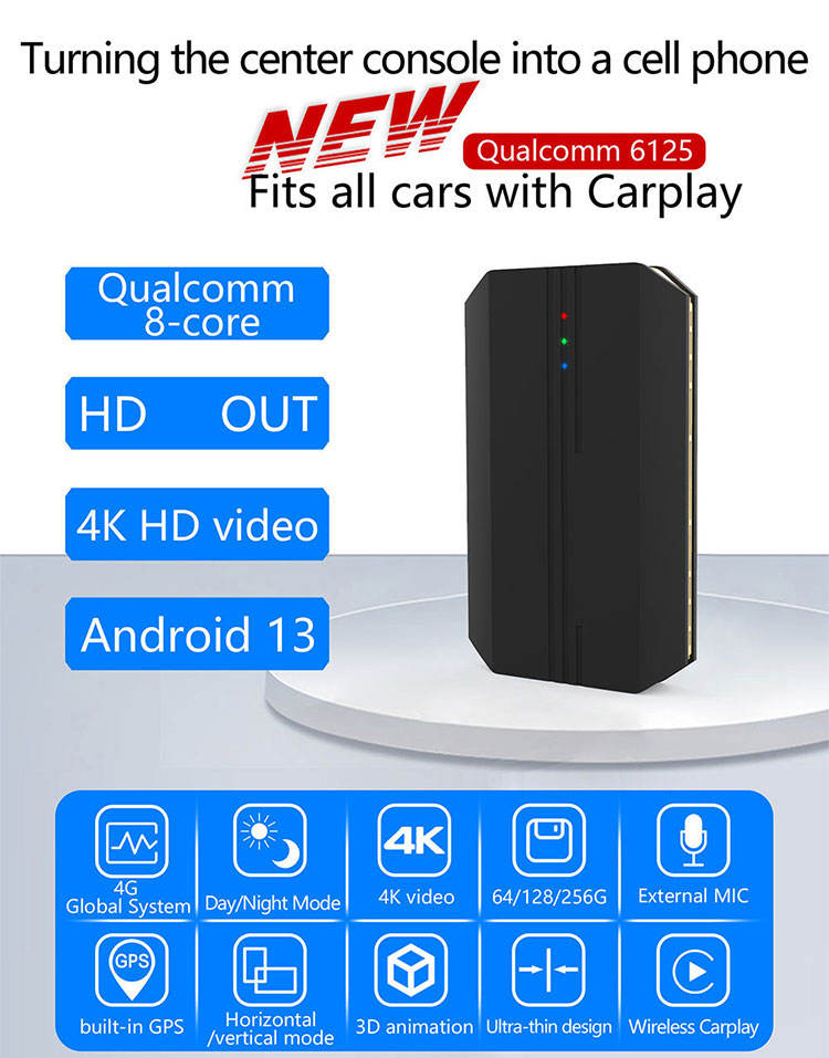 Logo personnalisé Android Ai Smart Box 4 + 64 Go sans fil Carplay Streaming AI Box Converter