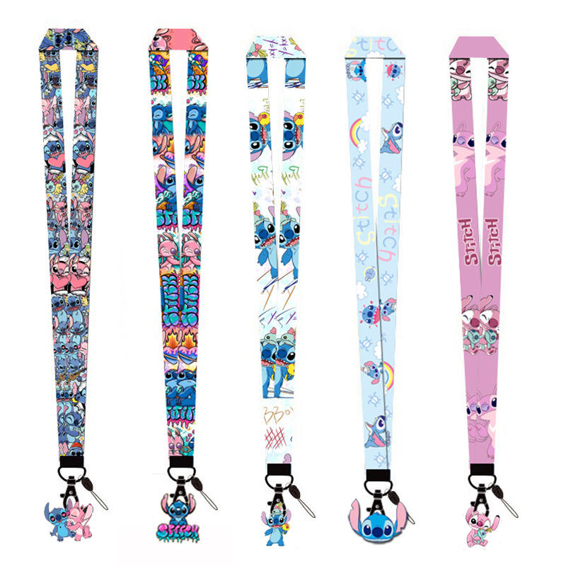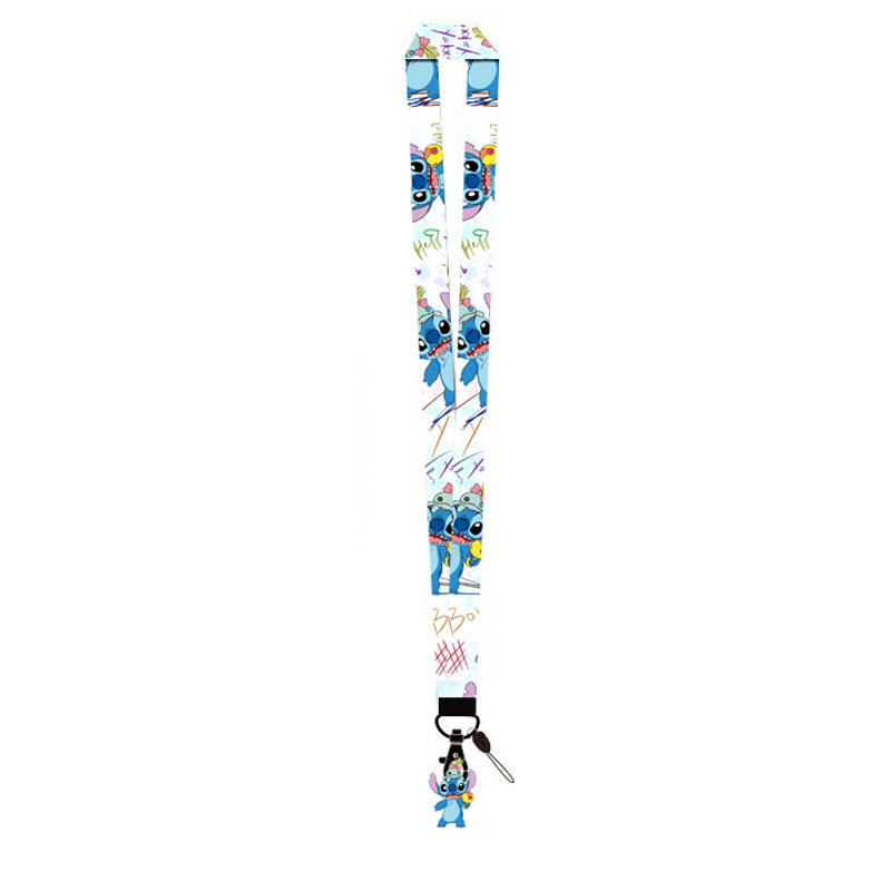 Cordon de cou pour téléphone portable personnalisé avec logo, motif dessin animé Stitch, ruban imprimé par transfert thermique, en polyester