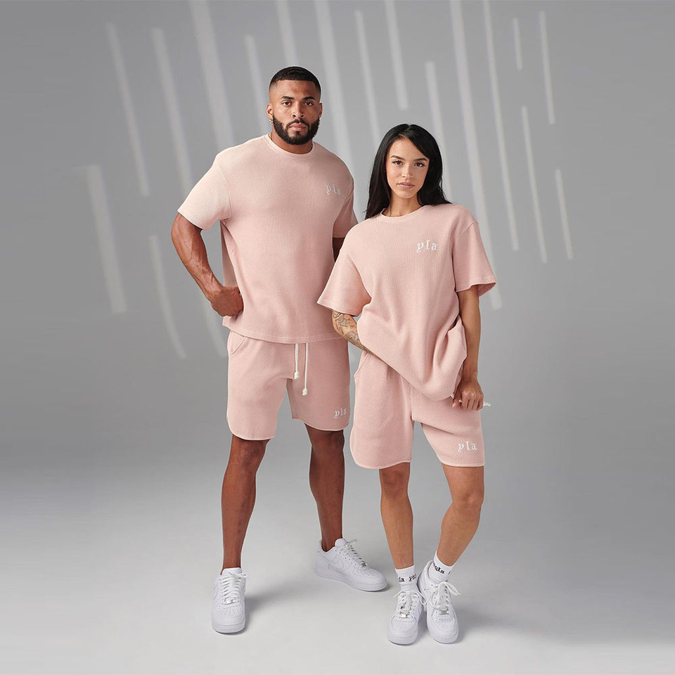 Ensemble short d'été deux pièces coupe ample avec logo personnalisé, t-shirt et short imprimés sérigraphiés avec patchs effet vieilli, tissu respirant