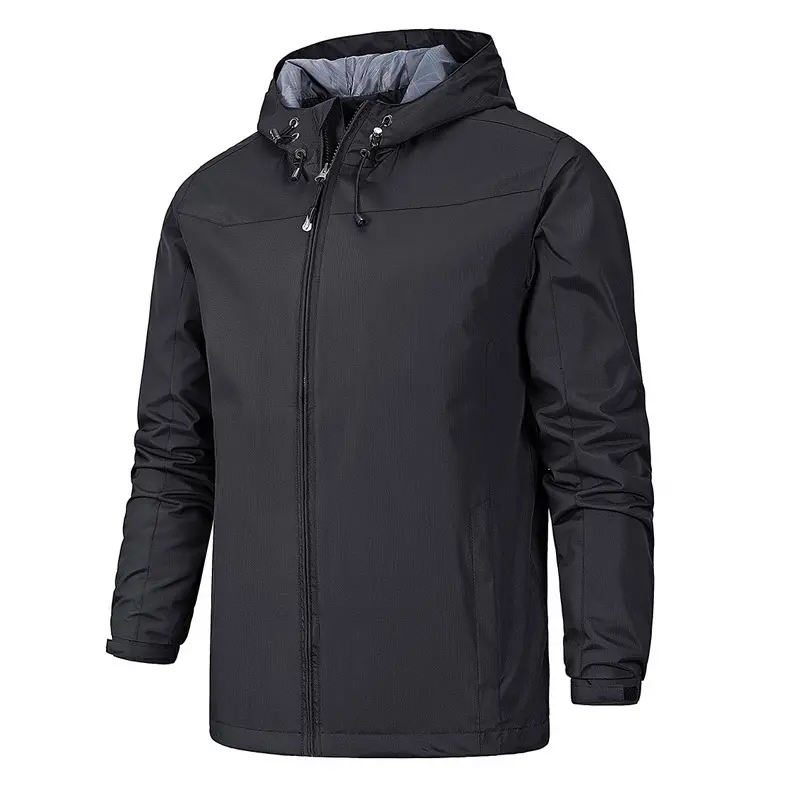 Veste coupe-vent unisexe sur mesure avec logo, taille plus, imperméable, à fermeture éclair, à capuche, col montant, teinte, pour l'extérieur