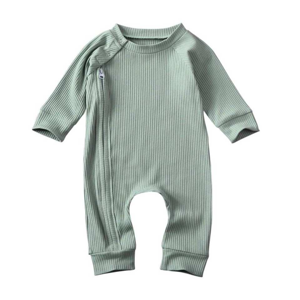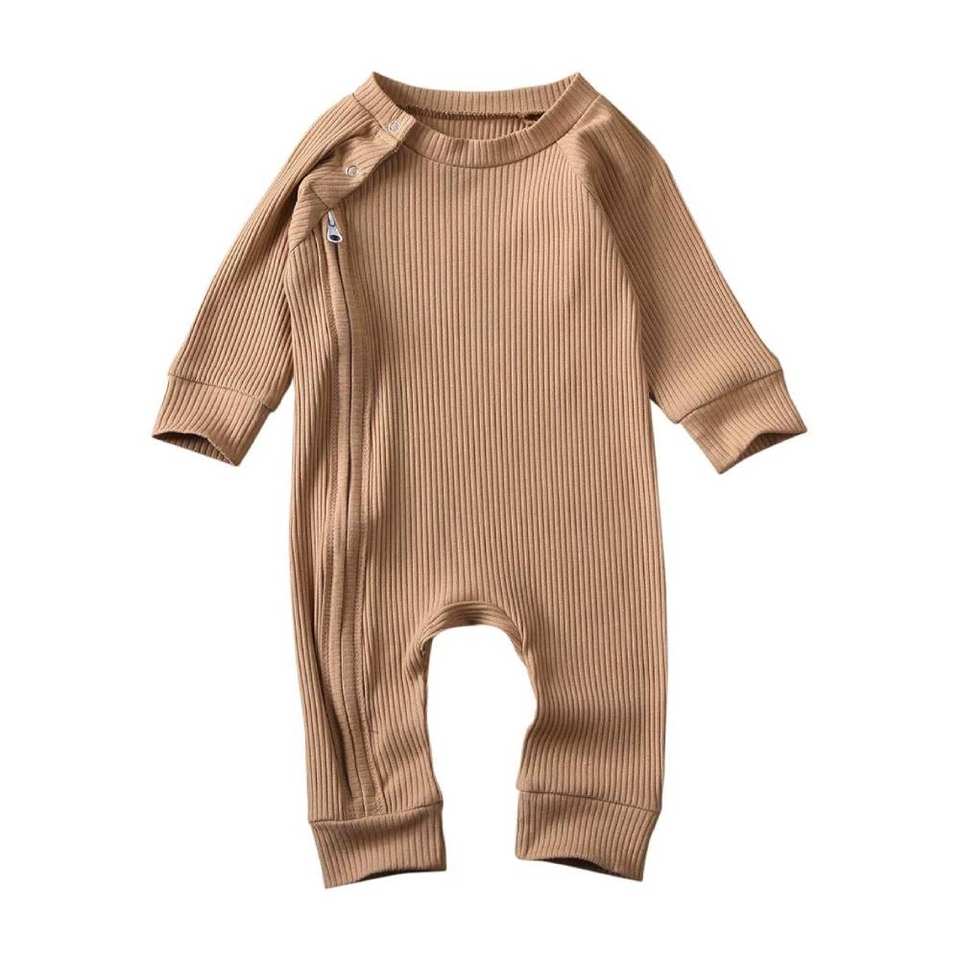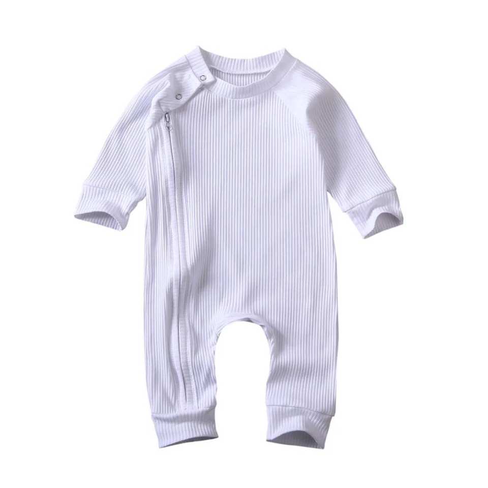 Vêtements pour bébés avec logo personnalisé combinaison à manches longues en coton pour bébés mignons barboteuse vierge avec fermeture éclair pour bébés garçons