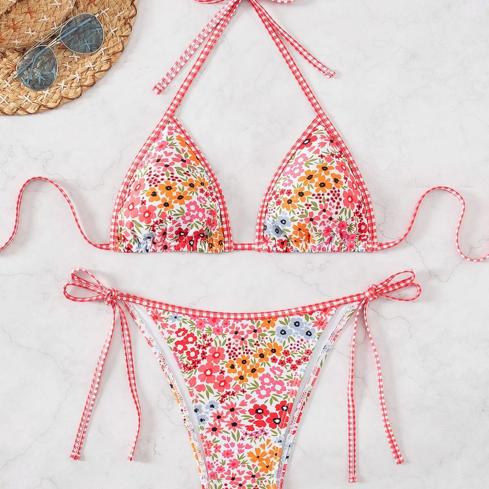 Bikinis personnalisés avec logo, maillots de bain brésiliens XL à rayures florales, respirants, fleurs 3D micro, 2 pièces sur mesure pour la baignade
