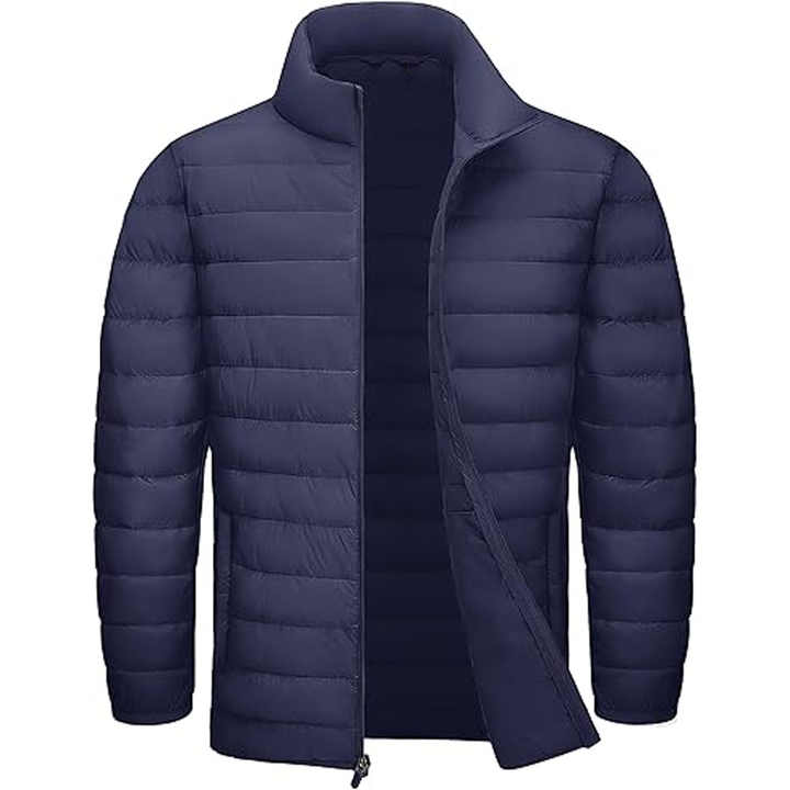 Veste matelassée légère noire et bleue avec logo personnalisé pour homme, manteaux en duvet imperméables surdimensionnés avec fermeture éclair chaude