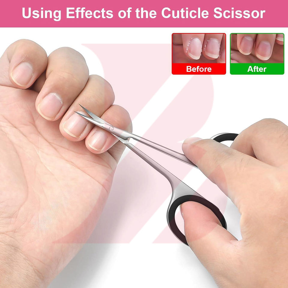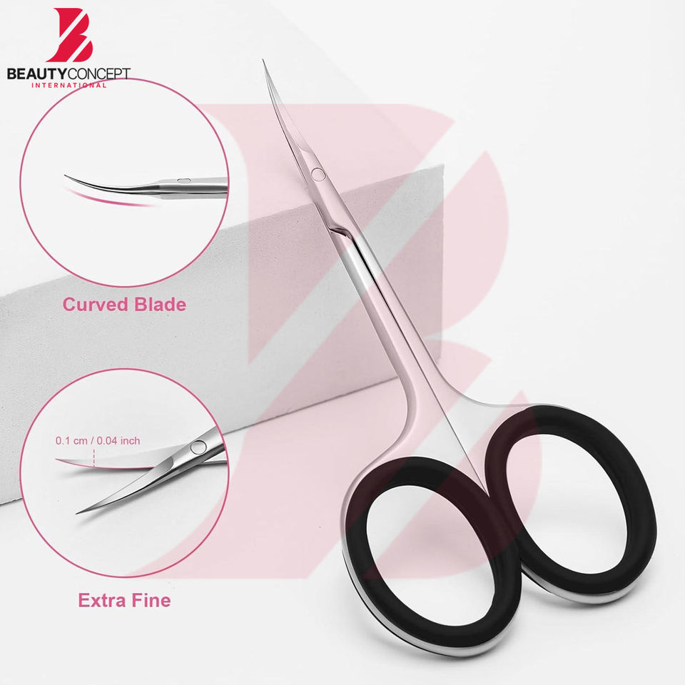 Ciseaux à cuticules professionnels avec logo personnalisé, revêtement noir, poignée ergonomique, outil de beauté pour l'élimination des peaux mortes