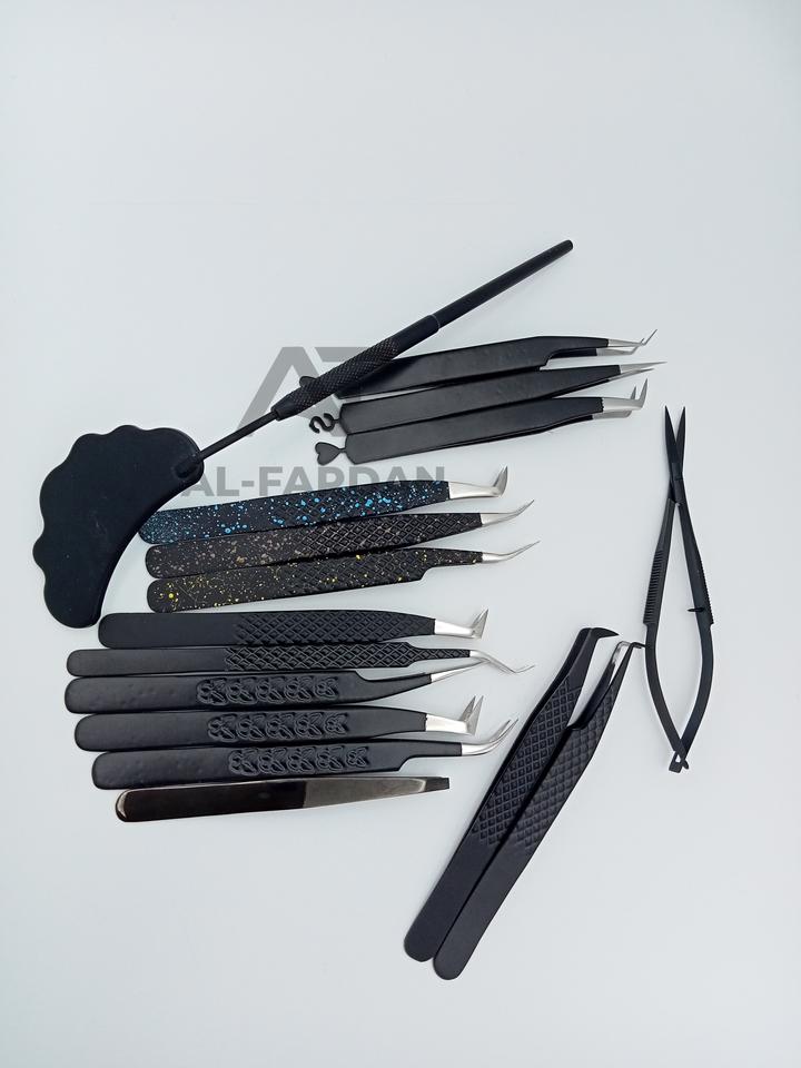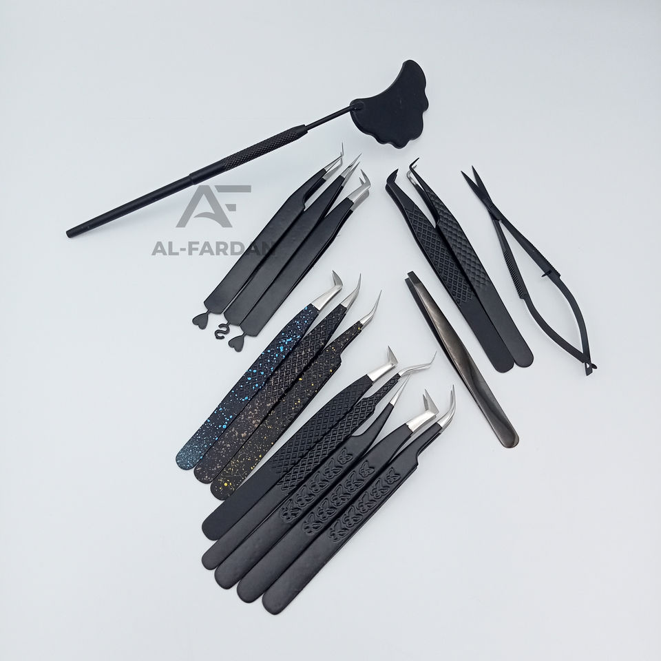 Pince à cils et sourcils avec logo personnalisé noir mat noir ensemble avec ciseaux à ressort pince à épiler volume cils en acier inoxydable massif