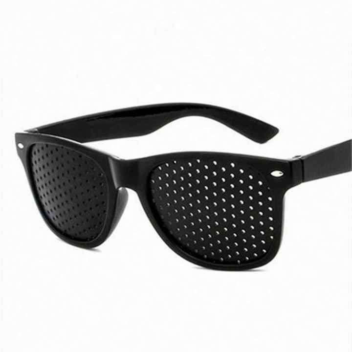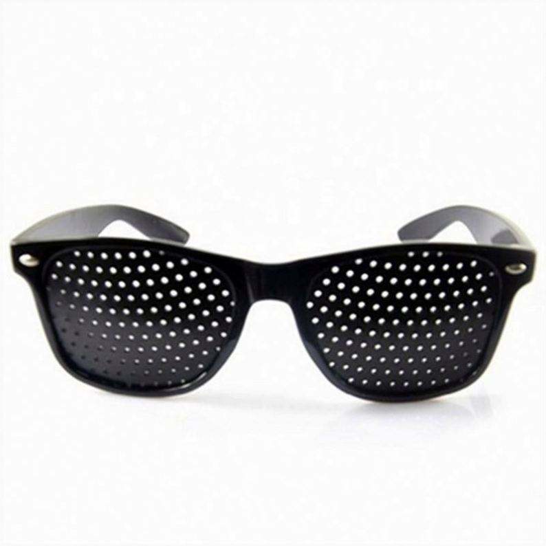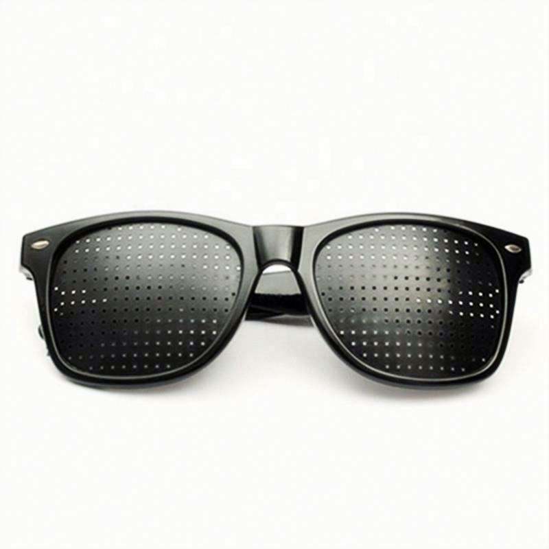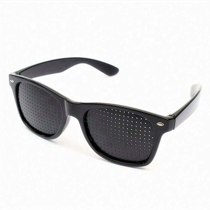 Lunettes à trous sténopéiques noires avec logo personnalisé pour l'amélioration de la vue, la guérison naturelle et le soin de la vision, anti-myopie