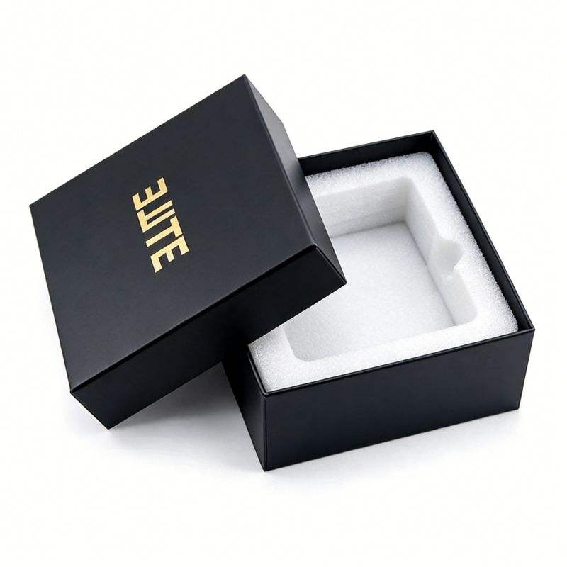 Boîtes à couvercle amovible en carton rigide noir à deux pièces avec logo personnalisé, matériaux recyclés, boîte cadeau de luxe en carton pour bijoux
