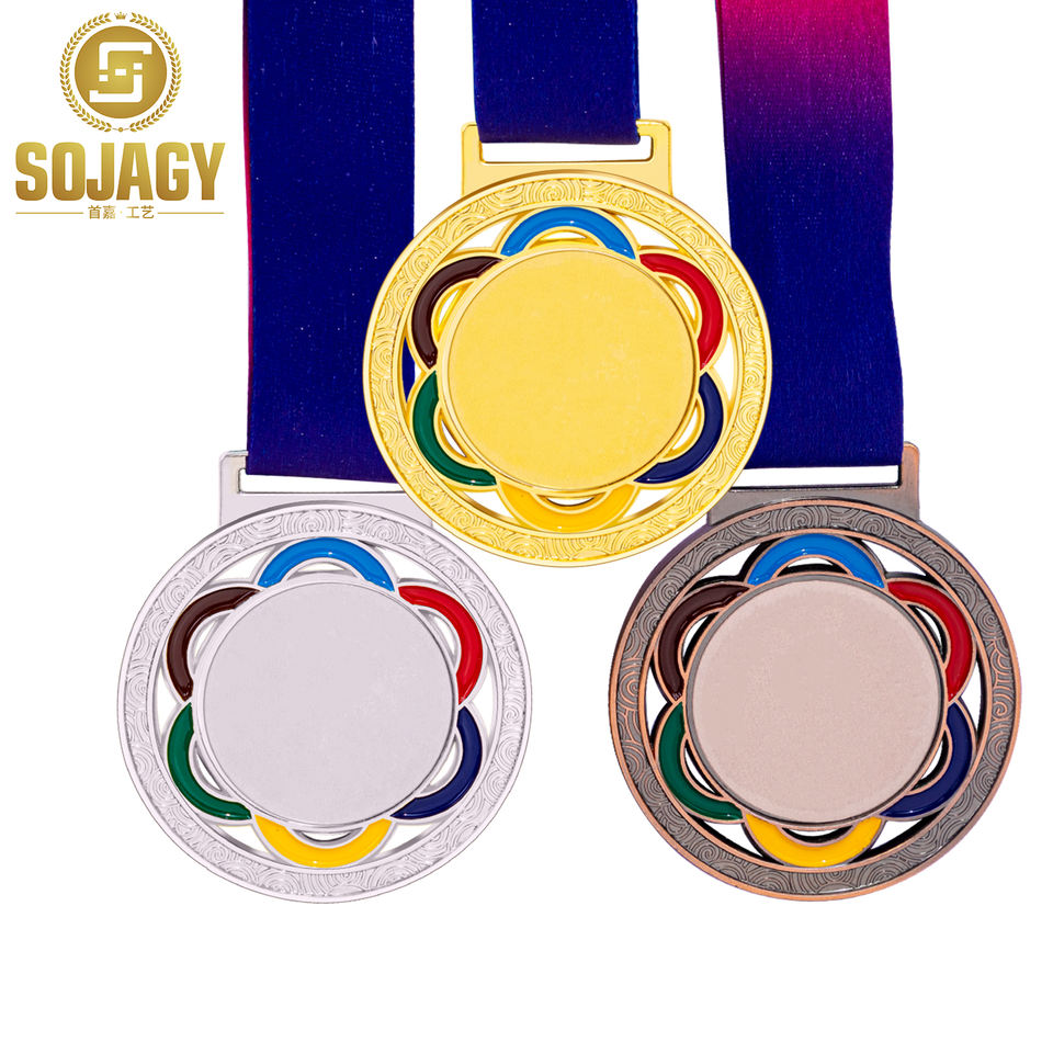 Logo personnalisé Blanks Sublimation Ribbon Awards Metal Trophy Sports Custom Trophées and Medals Plaques 2024 Paris Gold Blank Medal