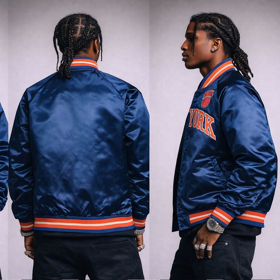 Custom Logo Blue Satin College Jacket Bomber Jackets Men Hip Hop Baseball Jacket for Men