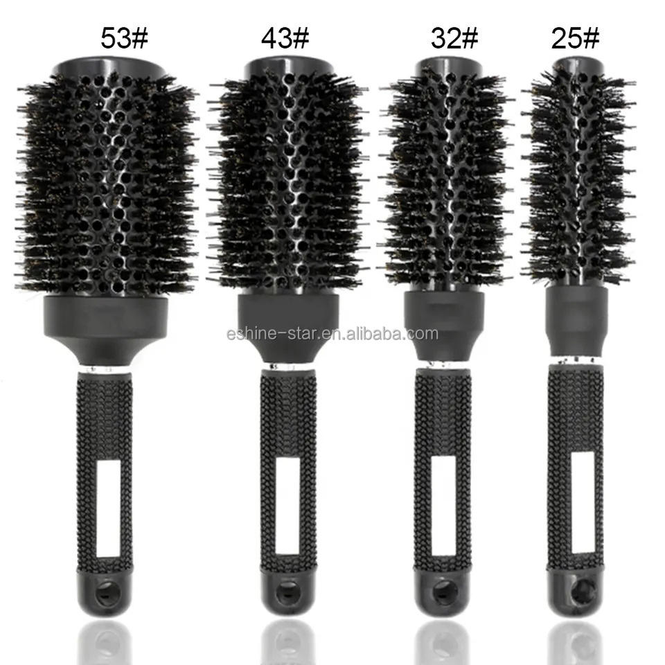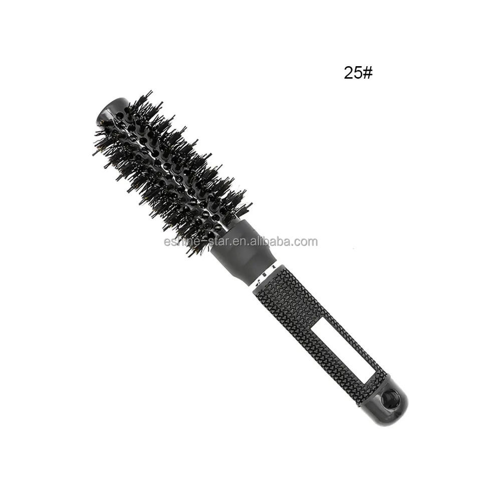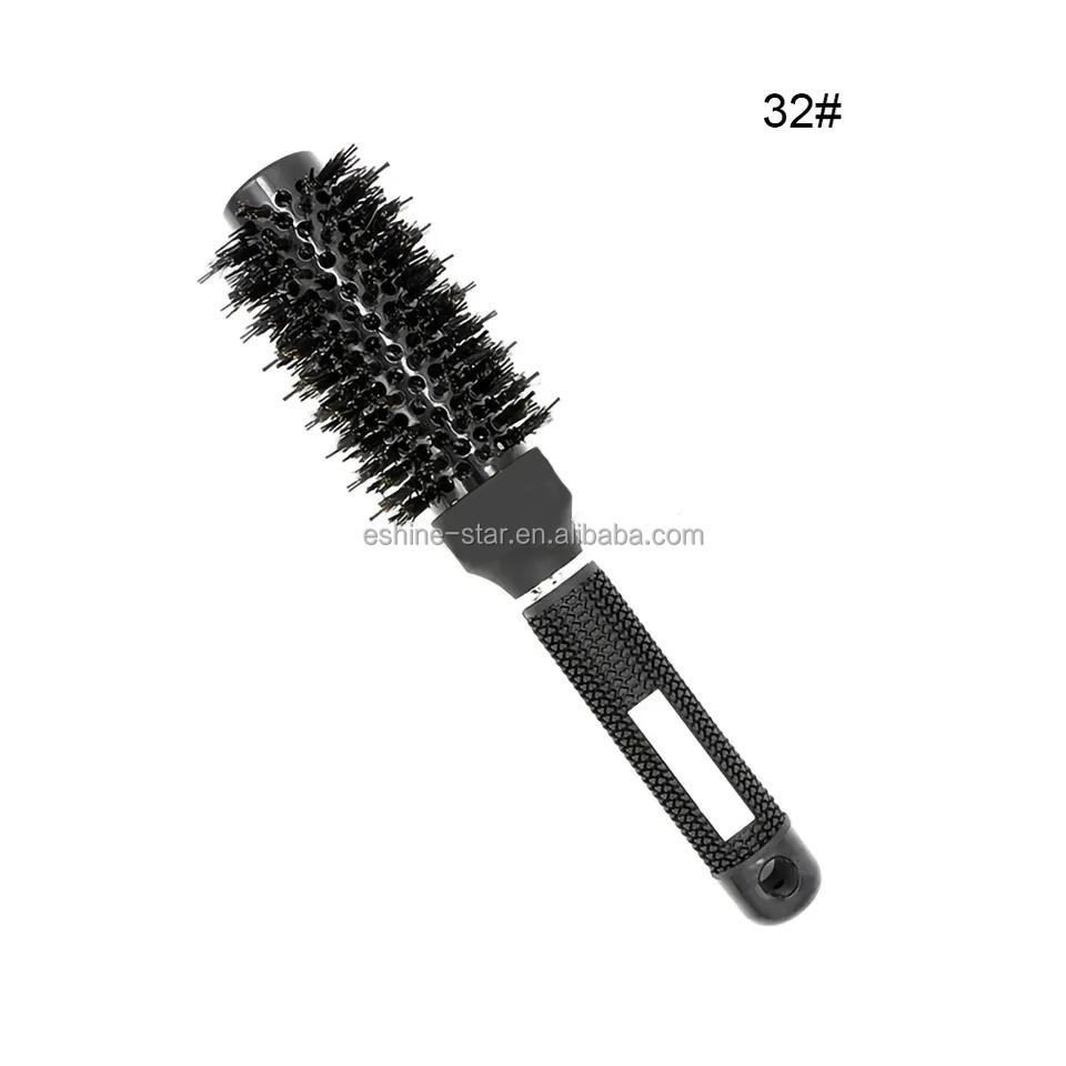 Brosses rondes professionnelles pour coiffeurs à double poils, avec manche en caoutchouc et poils de sanglier mélangés, logo personnalisé