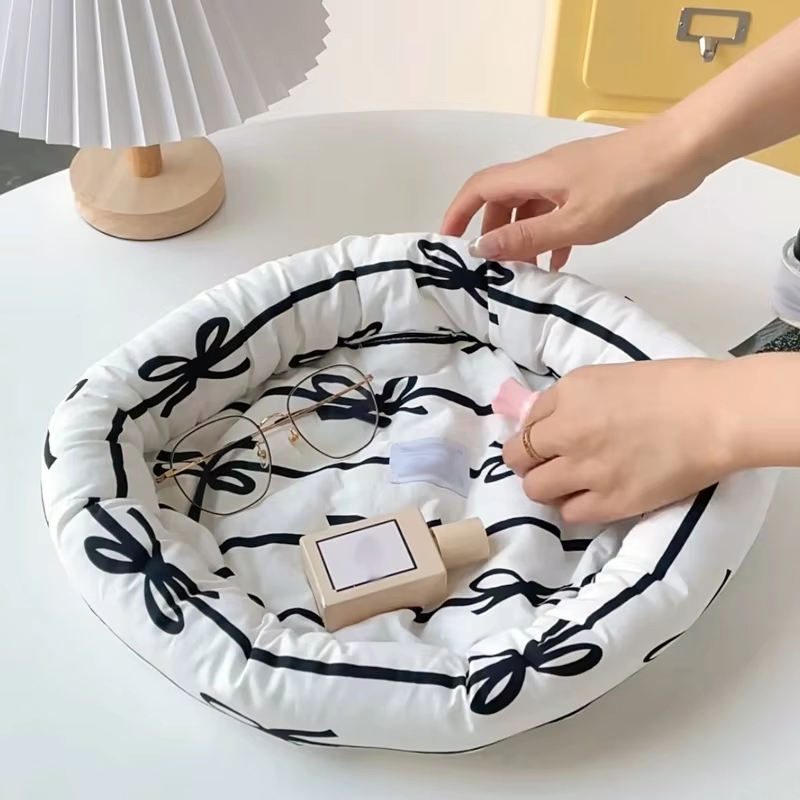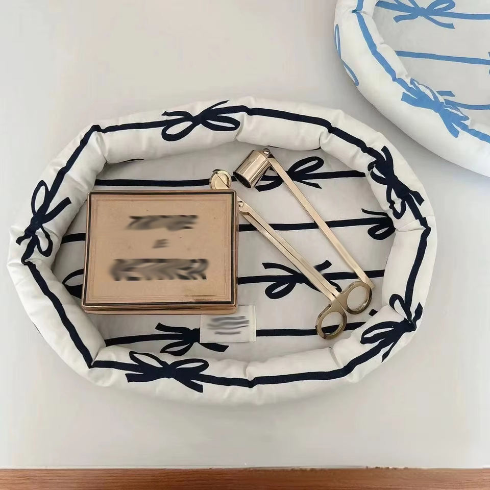 Panier de rangement de bureau moelleux à motif de nœud avec logo personnalisé, panier de rangement pour clés et bijoux, décoration de la maison