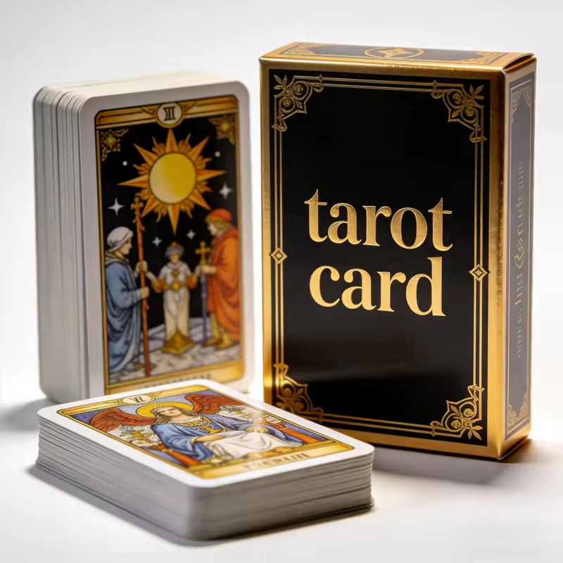 Jeu de cartes de tarot personnalisé avec logo, boîte de jeu de société, jeu de cartes de tarot 78 cartes en papier artistique avec dorure à chaud