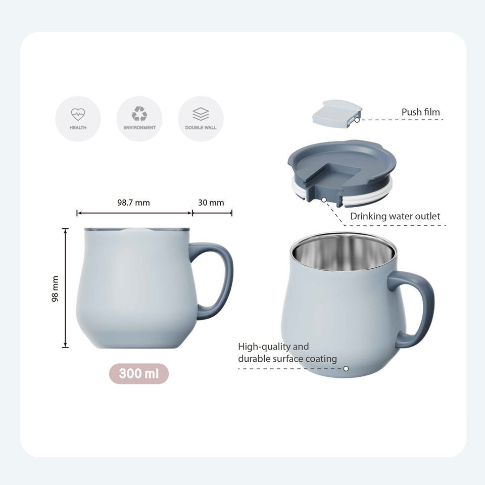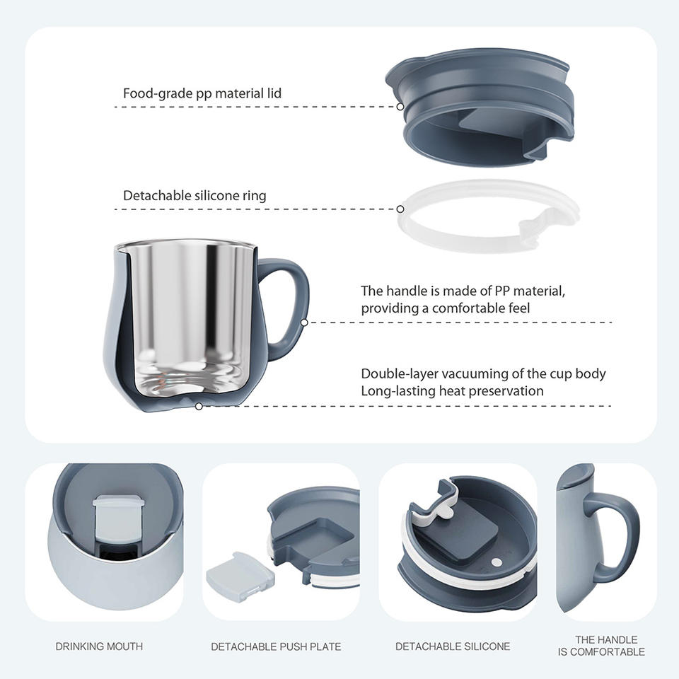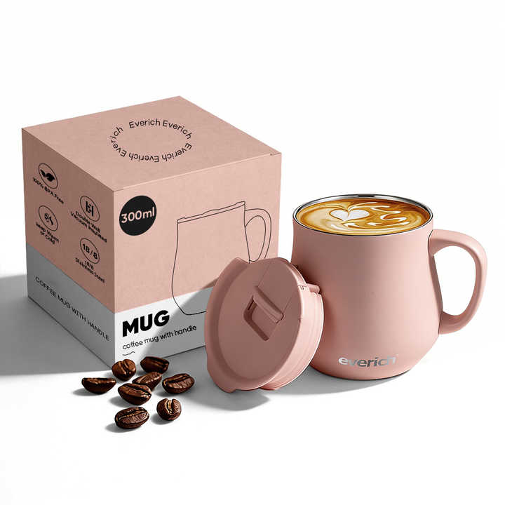 Mug en métal à double paroi de 300 ml sans BPA avec logo personnalisé, en acier inoxydable 304, tasses à café isolées avec couvercle et poignée