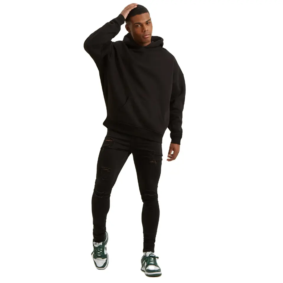 Sweat à capuche respirant avec logo personnalisé sweats à capuche épais teints en couleur unie double couche 100% coton à épaules tombantes Streetwear pour hommes