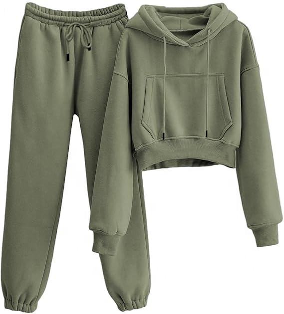 Ensemble de survêtement pour femme avec logo personnalisé imprimé, respirant, séchage rapide, comprenant un crop top à capuche ajusté et un pantalon taille haute, Nouveau design 2026 pour l'entraînement et la gym
