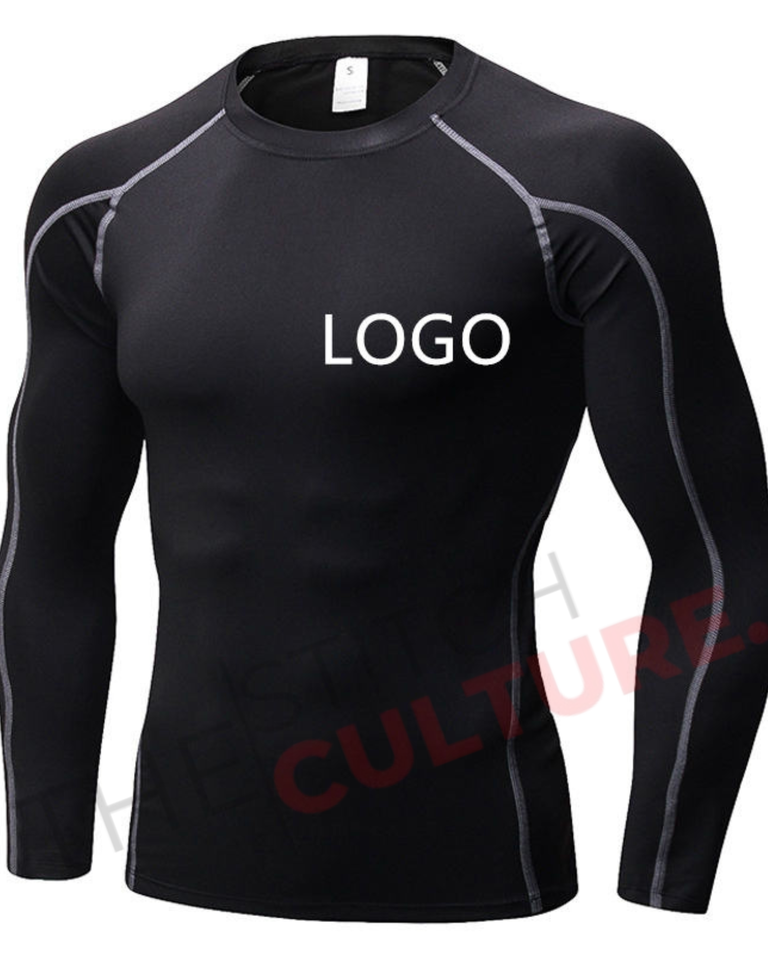 T-shirt de sport respirant à manches longues avec logo personnalisé, compression respirante, athlétique, pour la salle de sport, séchage rapide, pour hommes, compressé