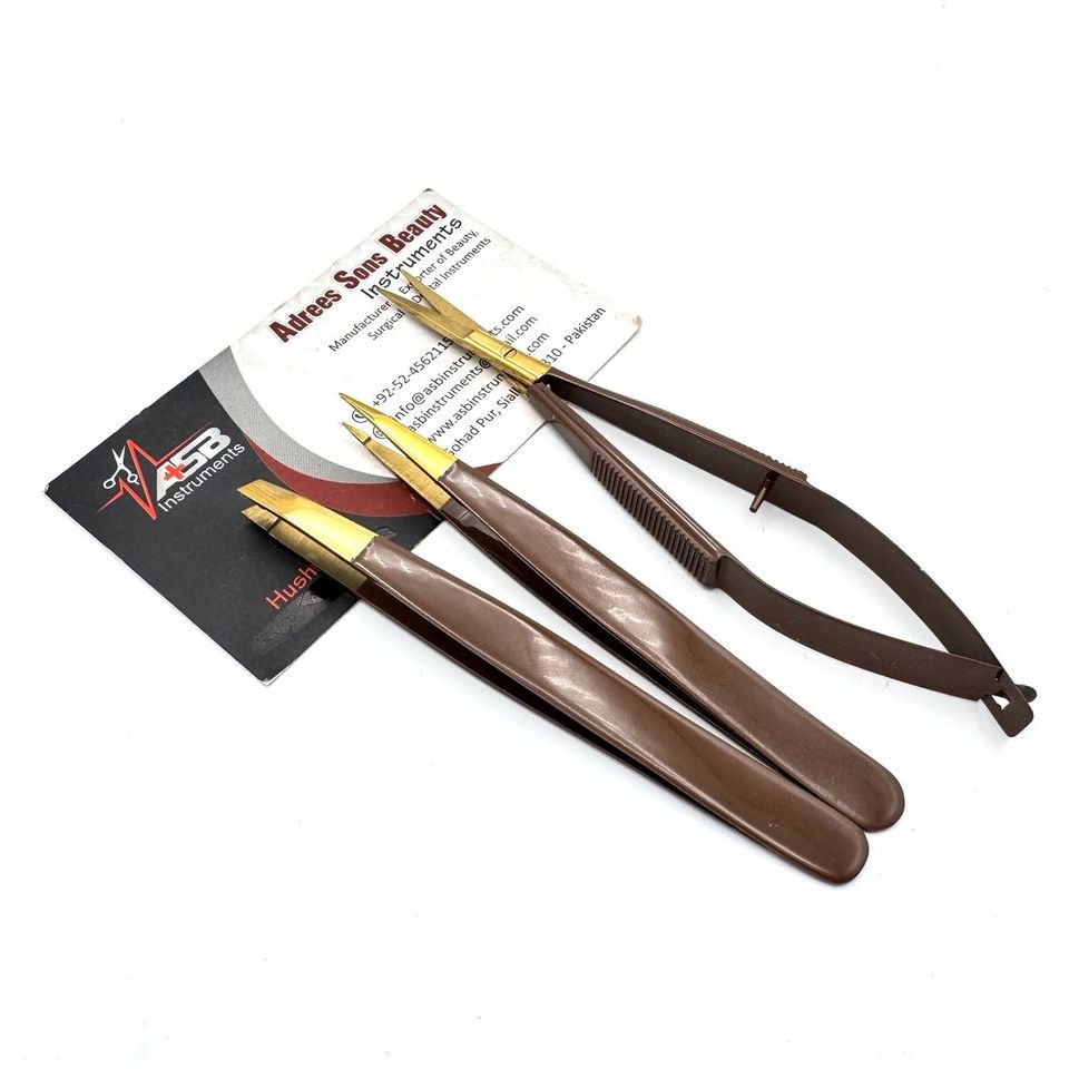 Pinces à épiler professionnelles durables de haute qualité, pointues et inclinées, en acier inoxydable, avec logo personnalisé, brun doré