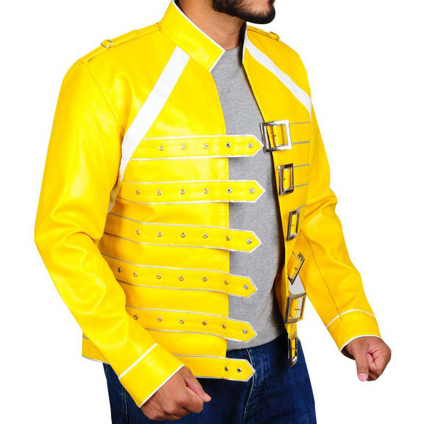 Blouson matelassé en cuir jaune pour homme avec boucle à logo personnalisé, style motard urbain, revers réversible, type Letterman, pour moto