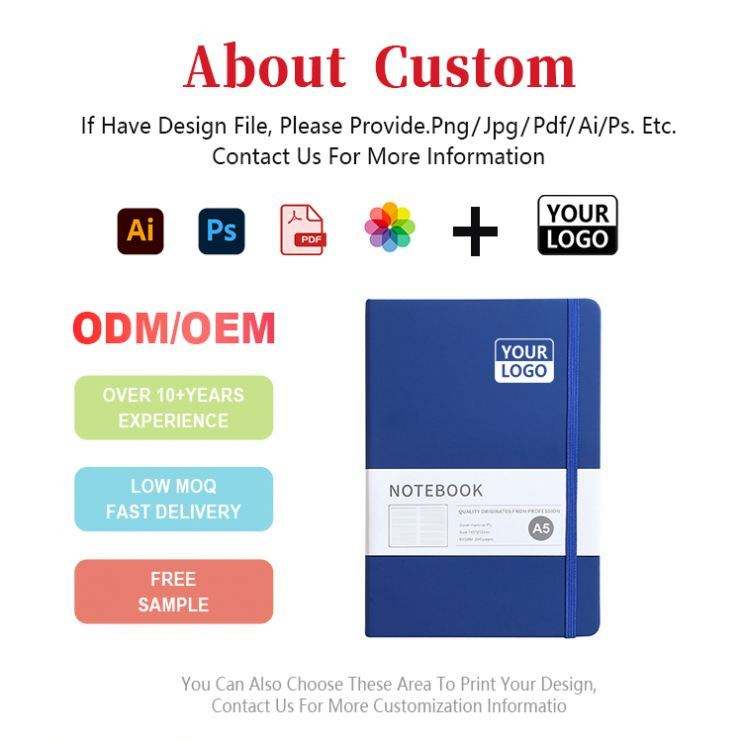 Bloc-notes personnalisé A5 avec logo d'entreprise, couverture en cuir PU personnalisable, carnet de notes de réunion de bureau de marque