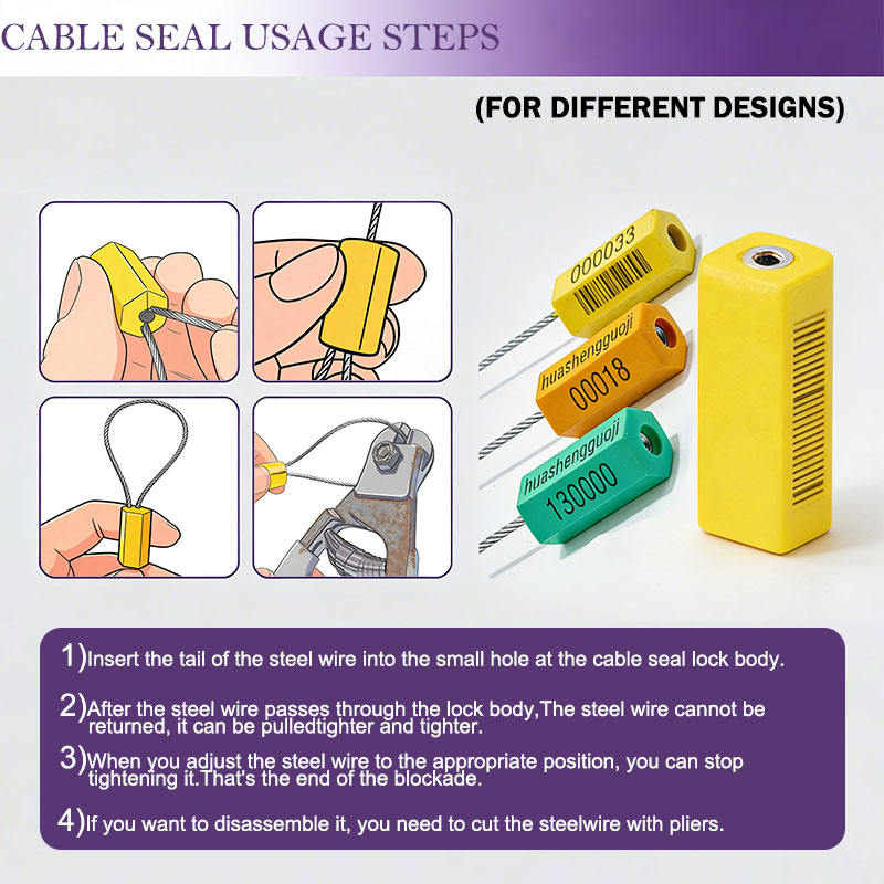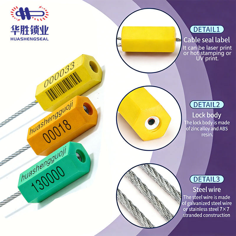 Sceau de câble avec logo personnalisé, sceau de sécurité haute résistance 2400N pour serrures de conteneurs et sceau de câble de sécurité pour remorque de voiture