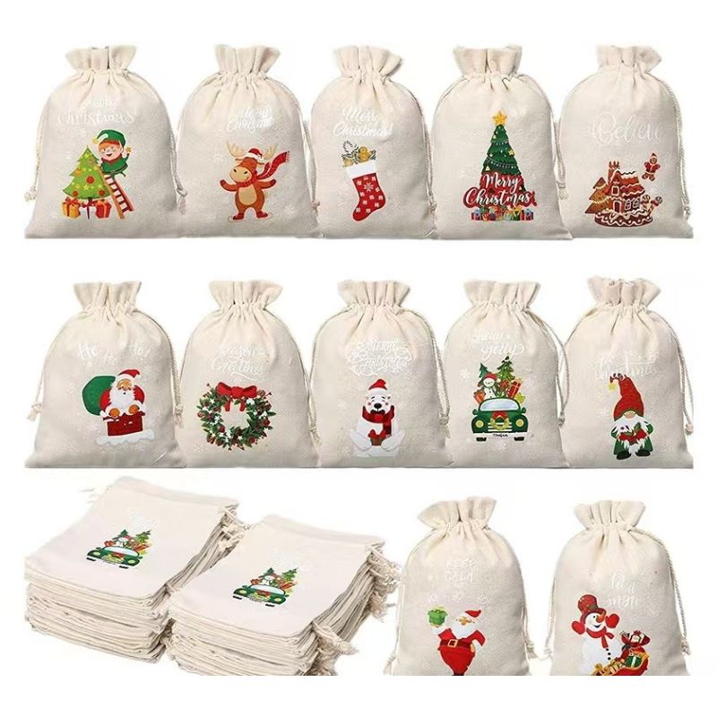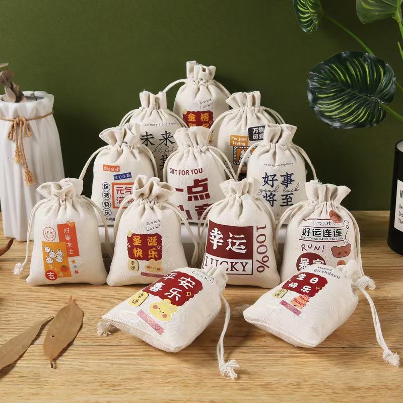 Sac à dos en toile de coton avec cordon de serrage, logo personnalisé, style pliable, avec motif de dessin animé, pour le shopping, les voyages et l'usage domestique