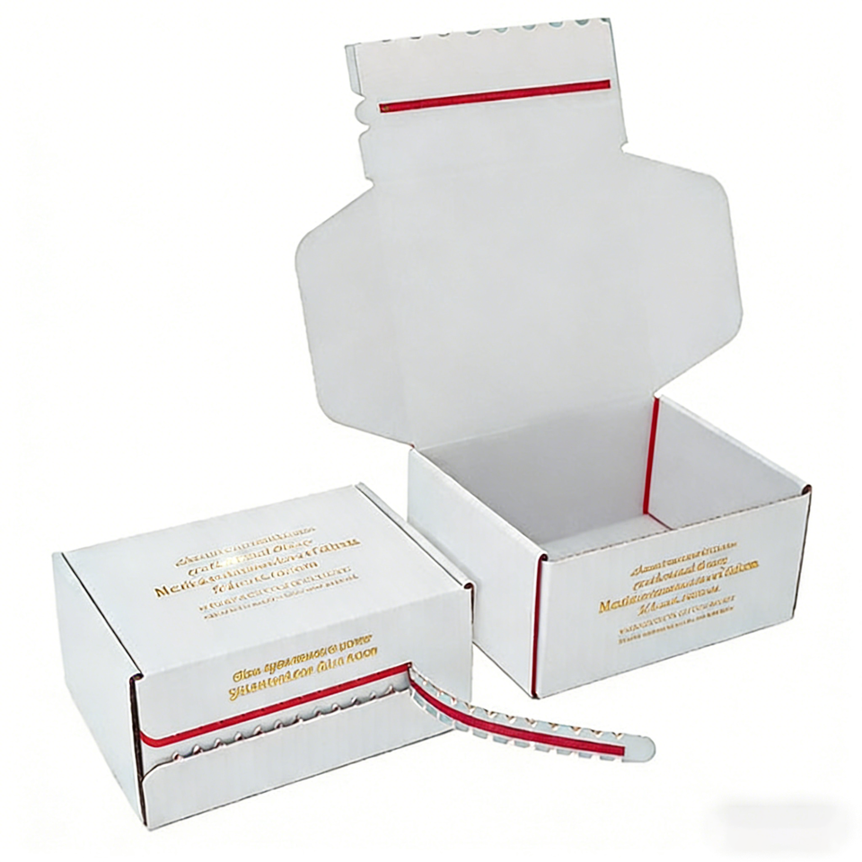 Boîte d'expédition en carton avec logo personnalisé, bande de fermeture éclair, bande adhésive pour l'envoi commercial, bande de déchirure, boîte d'expédition auto-scellante