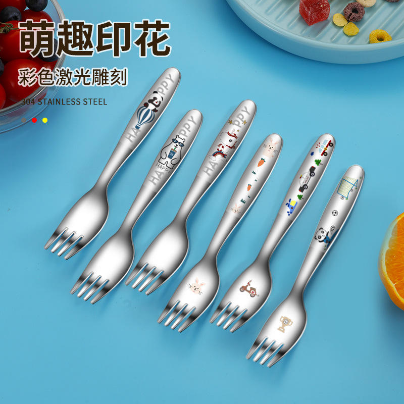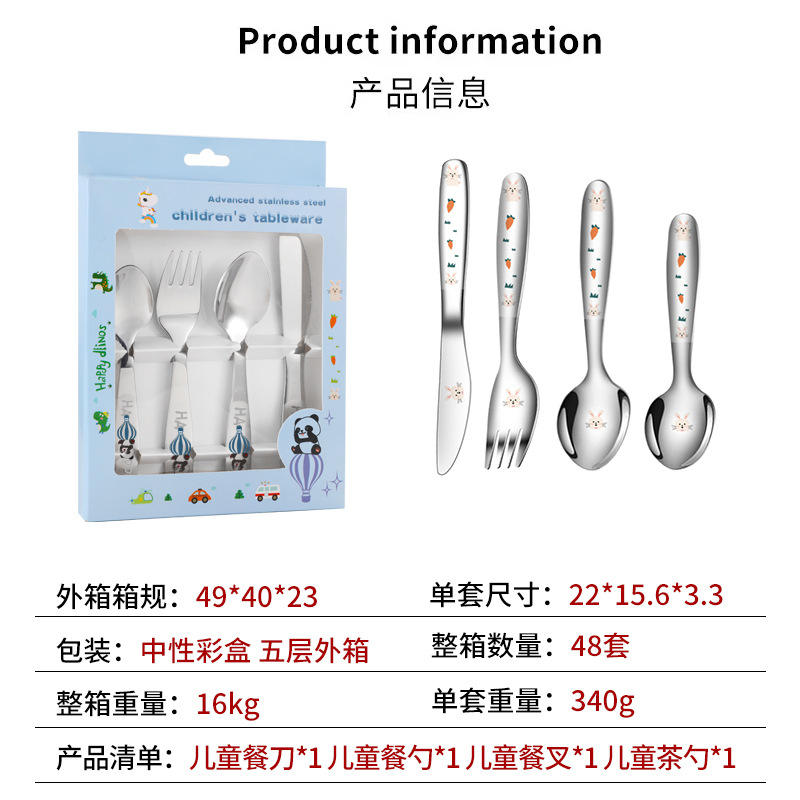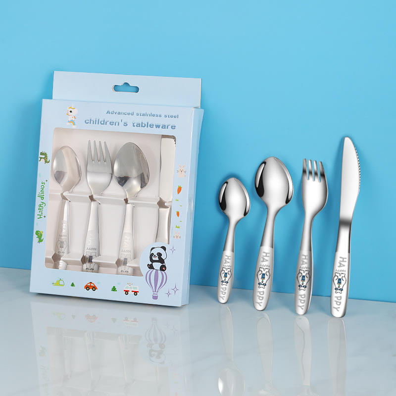 Logo personnalisé dessin animé couverts 18/10 de qualité alimentaire en acier inoxydable couteau cuillère fourchette enfants ensemble de couverts