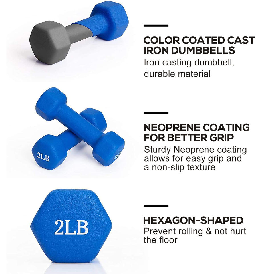 Haltères Compactes en Fonte avec Logo Personnalisé, 1kg 2kg 3kg, Revêtement Néoprène pour Fitness et Entraînement