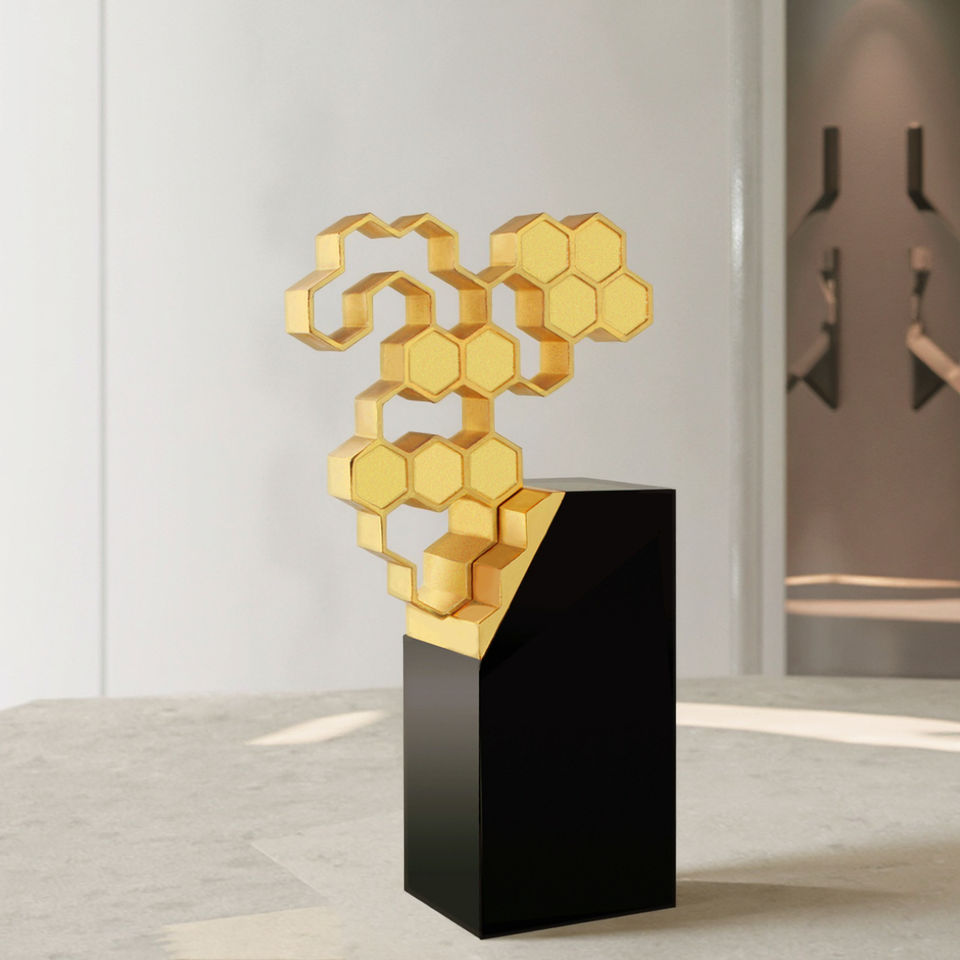 Logo personnalisé Abeille Castellée Prix Abeille d'Or Maison Abeille Artisanale Finition Métallique Trophée Diligent Symbole Plaqué Technique Souvenir