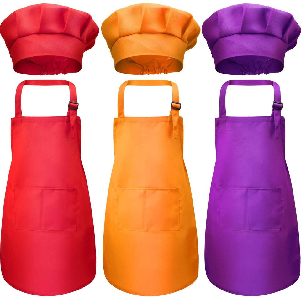 Tablier et chapeau de chef pour enfants avec logo personnalisé Tabliers pour enfants avec poches pour la cuisine, la cuisson et la peinture pour garçons et filles