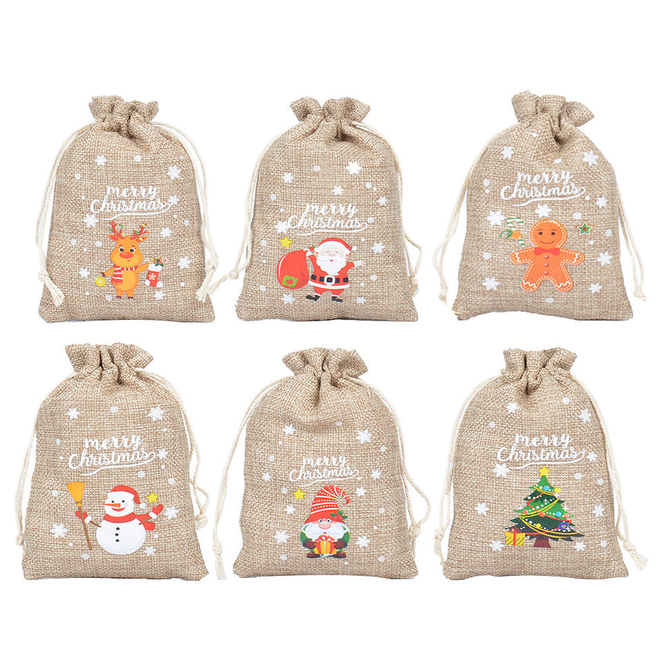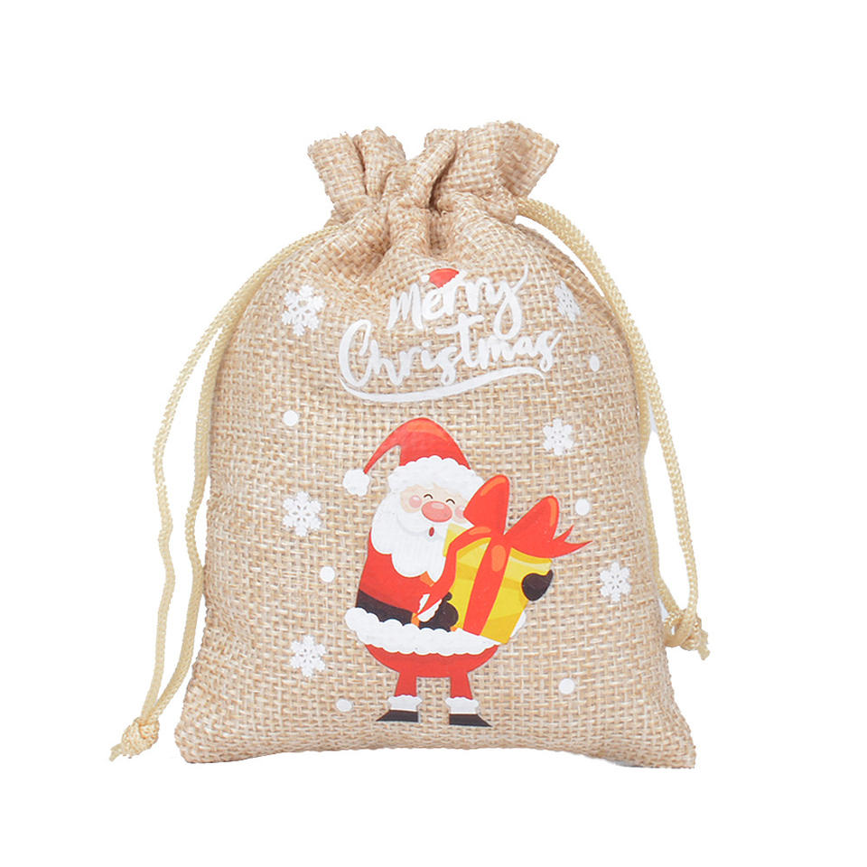 Sac cadeau de bonbons de Noël avec logo personnalisé recyclable 10*14cm sac à cordon de jute emballage de conceptions personnalisées OEM