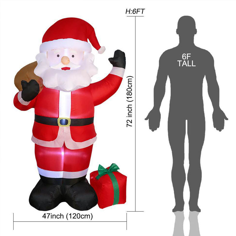 Père Noël gonflable décoratif personnalisé avec logo, vente en gros d'usine, 6 pieds de haut, ornement de Noël gonflable avec lumière LED