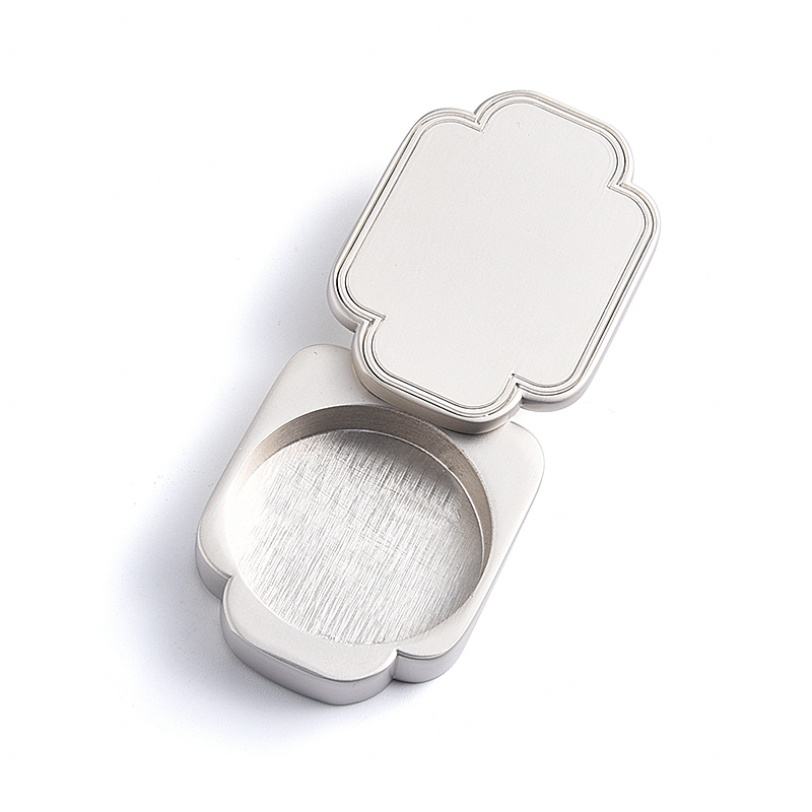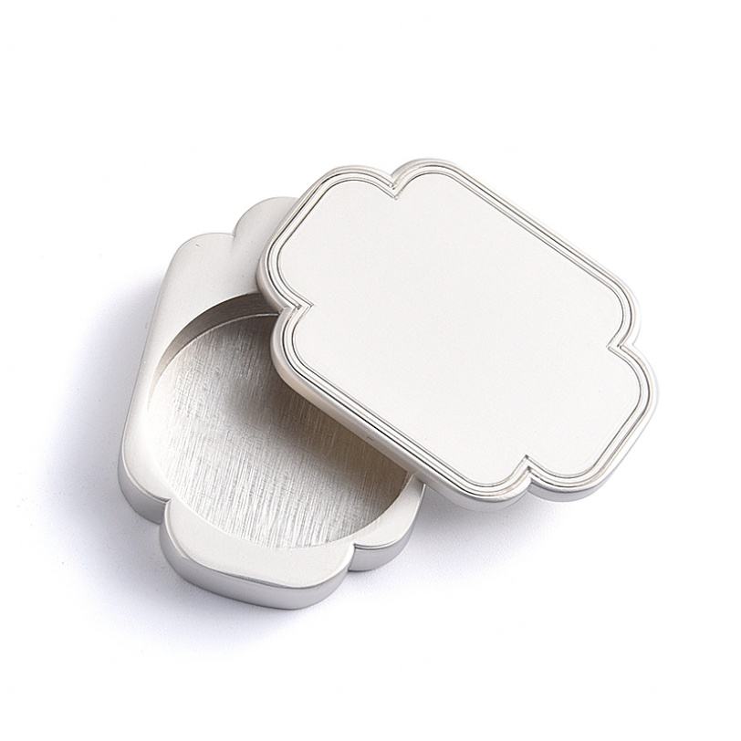 Boîte de parfum solide en métal de forme irrégulière, petite, argentée, classique, avec logo personnalisé