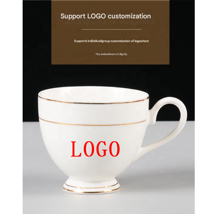Ensemble de tasses à café personnalisées avec logo, tasse en porcelaine et soucoupe pour l'image de marque hôtelière, approvisionnement en gros