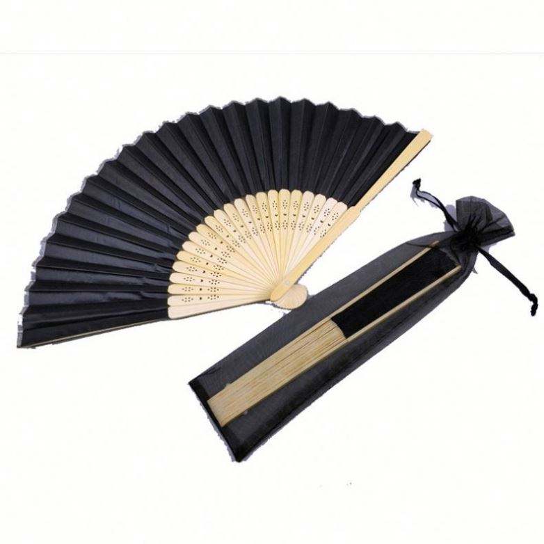 Éventail portable en bambou avec logo personnalisé, style DIY, en polyester taffetas de soie, personnalisable par sérigraphie/gravure pour mariage