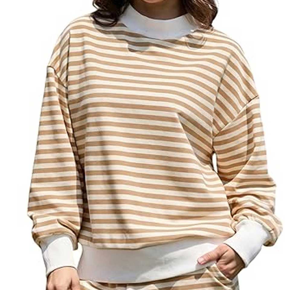 Nom du produit:Sweat-shirts bicolores à col montant pour femmes