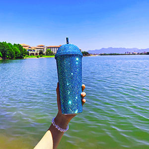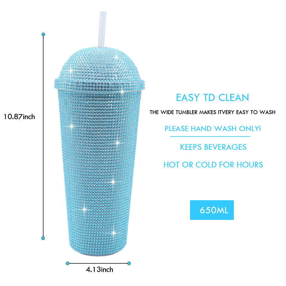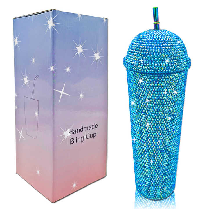 Tasse à café froide couleur logo personnalisé gobelet de fête en diamant gobelet clouté bouteille d'eau gobelet avec paille