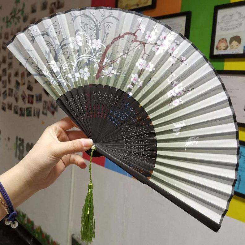 Éventail pliant personnalisé en bambou et plastique avec logo, éventail à main en bois peint pour mariage, grand éventail chinois portable