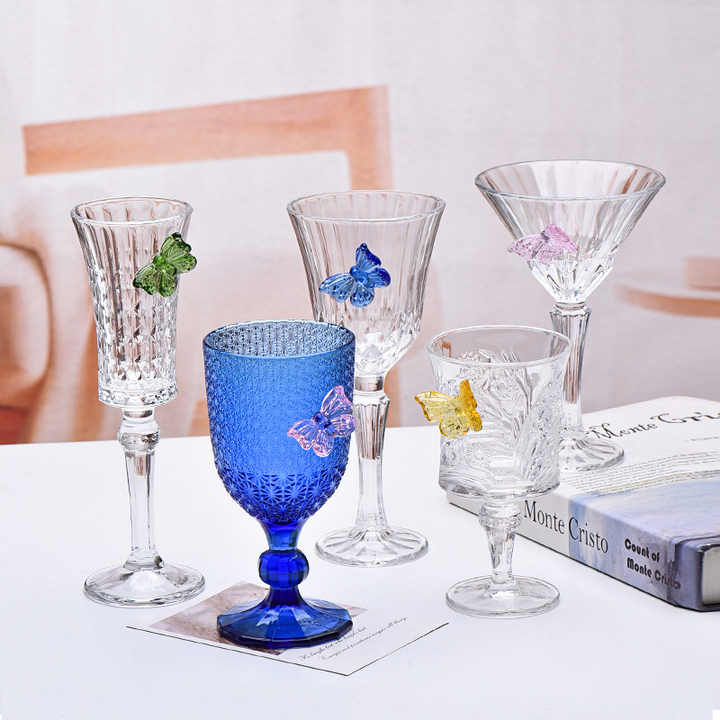 Numéro de Type:Colorful butterfly embossed crystal stemmed glass